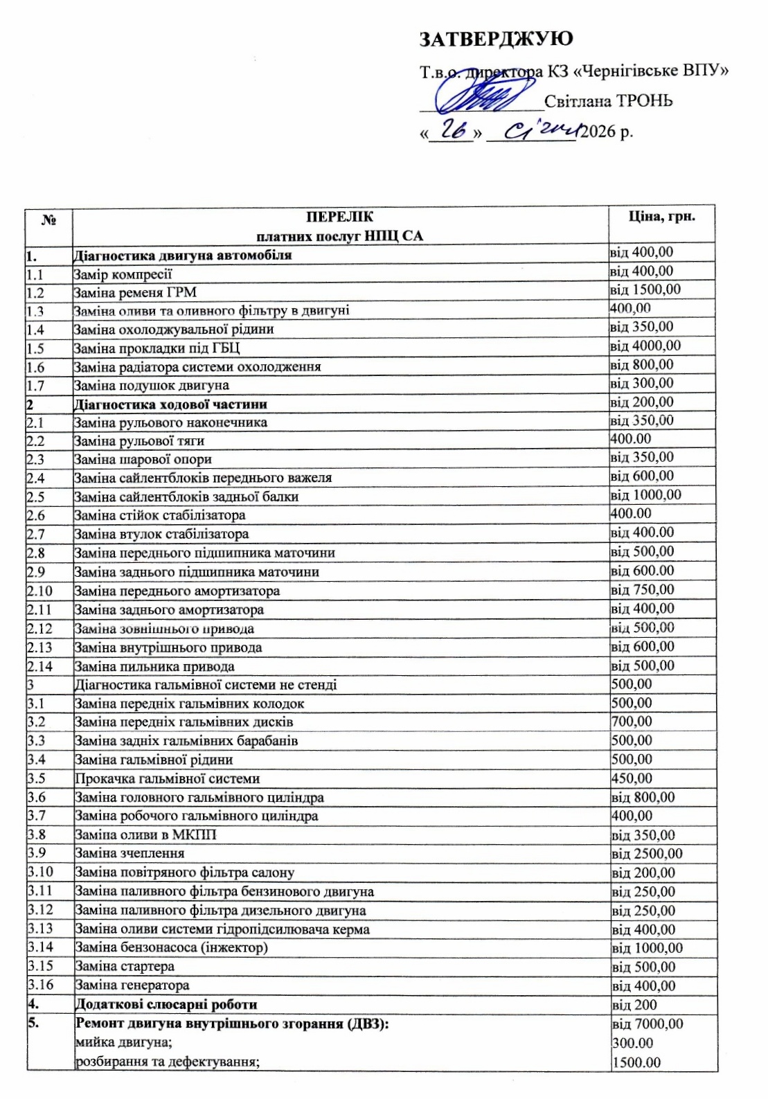 - слюсар з ремонту колісних транспортних засобів (термін навчання 3-4,5 місяців);