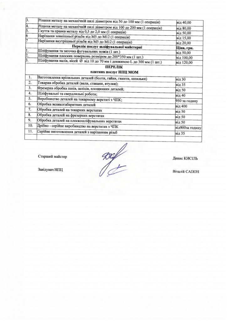 | 1 | Верстатник широкого профілю (2 розряд) | Очно-дистанційна | 8500 | Свідоцтво про присвоєння (підвищення) робітничої кваліфікації державного зразка |